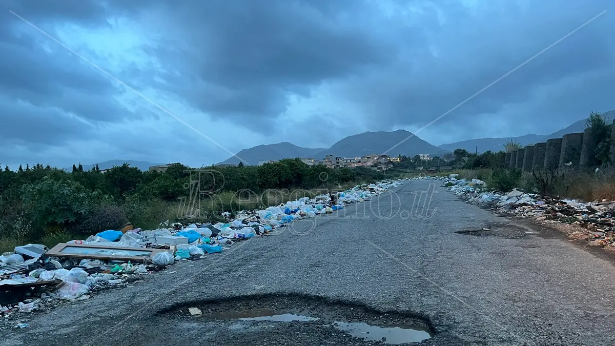 Resta uno scenario di degrado assoluto la strada che costeggia il torrente Valanidi I a Mortara, nel quartiere di San Gregorio, zona sud di Reggio Calabria. Rifiuti di ogni genere continuano ad essere abbandonati illegalmente ai margini. Ma sono talmente tanti che, accumulandosi, invadono la stessa strada flagellata da buche e fosse, anche piuttosto pericolose per i mezzi in transito.