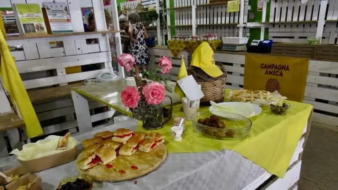 Prodotti genuini, dal coltivatore al consumatore a km zero, con spesa attenta e consapevole nel rispetto della Vera dieta mediterranea e del ciclo stagionale dei prodotti. Pasquale Capri’ e Benvenuto Marra hanno potuto assaggiare l’aperitivo offerto con tutti prodotti delle aziende esaltati con ricette della nostra tradizione culinaria locale.