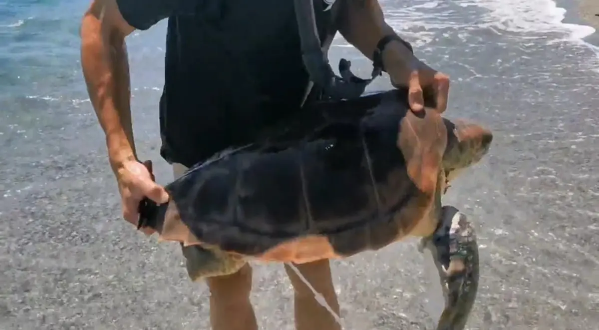 Un esemplare di tartaruga Caretta Caretta è stato trovato impigliato in una rete da pesca lungo la costa del comune di Condofuri, nei pressi della fiumara dell’Amendolea. La rete, stretta attorno ad una pinna dell’animale, era a sua volta impigliata in una pedana di legno.