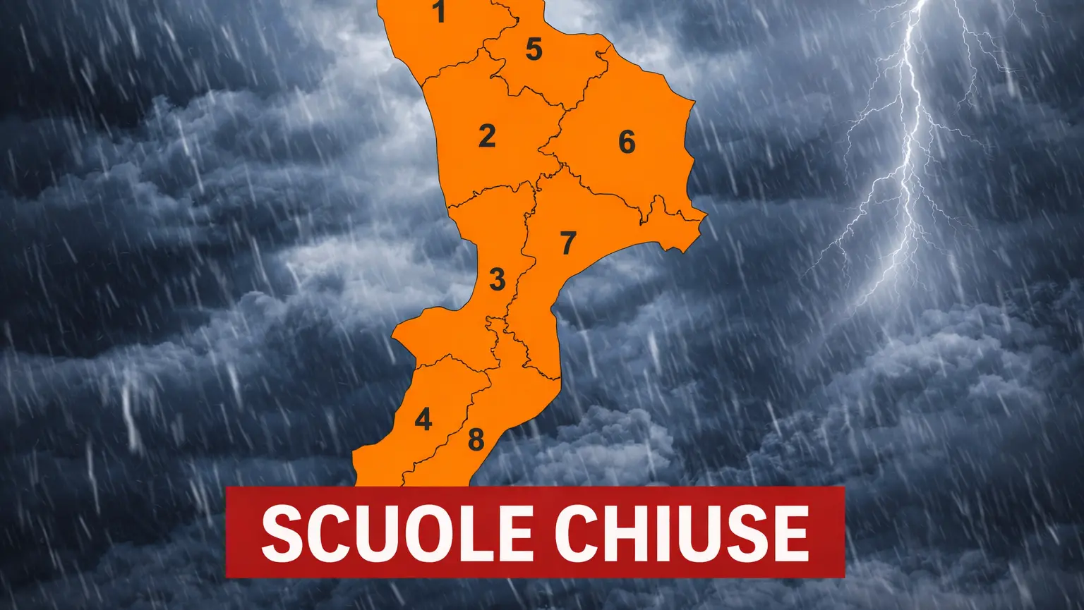 A seguito del bollettino di allerta meteo diramato dal sistema regionale di Protezione Civile, che segnala un livello di allerta arancione per rischio idrogeologico e idraulico, il sindaco f.f, Mimmo Battaglia, ha disposto la chiusura per la giornata di lunedì 16 marzo 2026 di tutte le scuole di ogni ordine e grado presenti sul territorio comunale. La sospensione riguarda anche i servizi educativi per la prima infanzia, compresi i nidi d’infanzia.