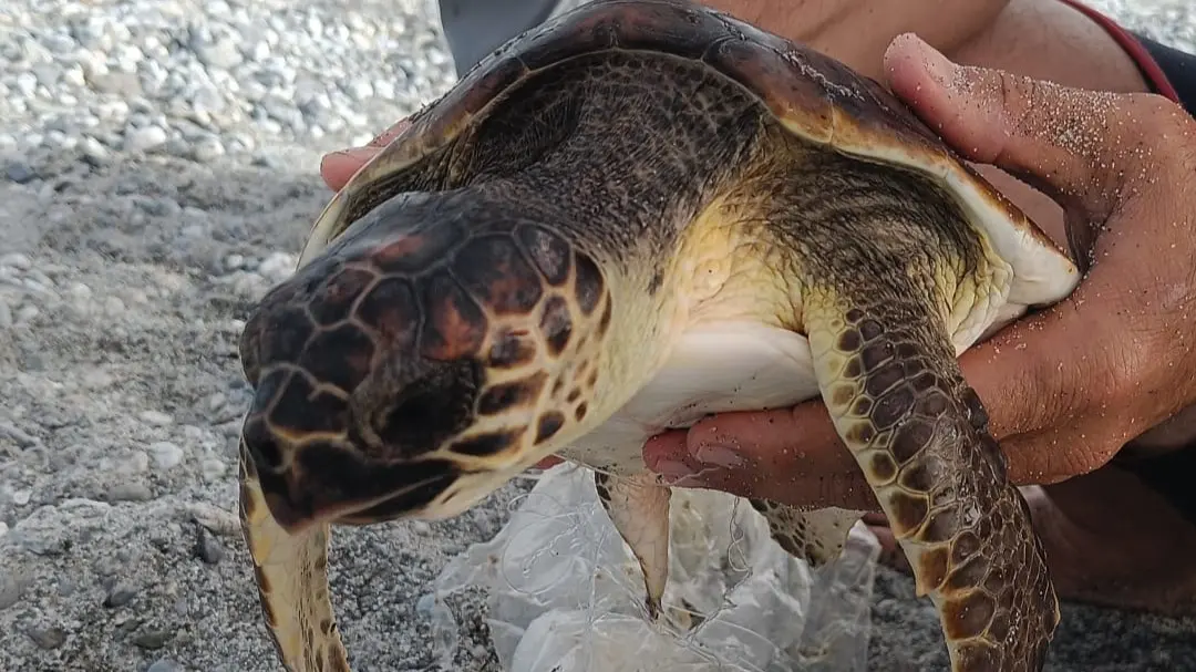 Anche questa tartaruga marina è una vittima del ByCatch, la cosiddetta “cattura accidentale” che uccide milioni di animali marini ogni anno e tra questi, tartarughe marine, squali, cetacei, uccelli marini, razze, mante e milioni di altri pesci.