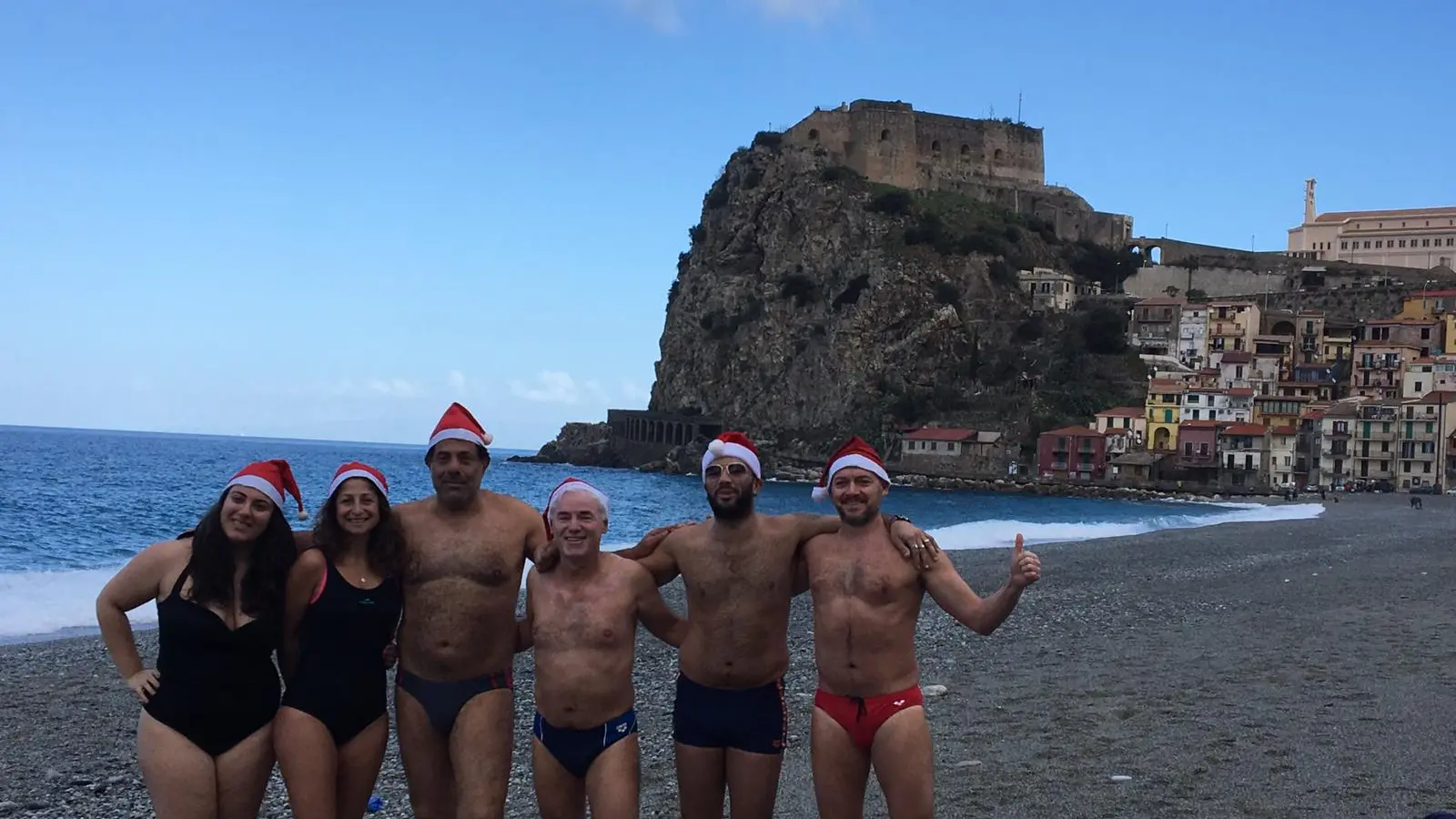 Le mareggiate degli ultimi giorni sono solo un ricordo, a tenere viva la spiaggia di Scilla è stato invece un corroborante e salutare tuffo in mare nell’incantato paesaggio scillese, con tanto di brindisi bene augurante. Qualche piccola onda e il vento fresco, strascichi dell’ormai attenuato maltempo che ha colpito la Costa Viola, non hanno impedito i festeggiamenti. Adesso si attende l’anno nuovo che, come promesso dalle previsioni, porterà ancora onde alte e mare in burrasca.