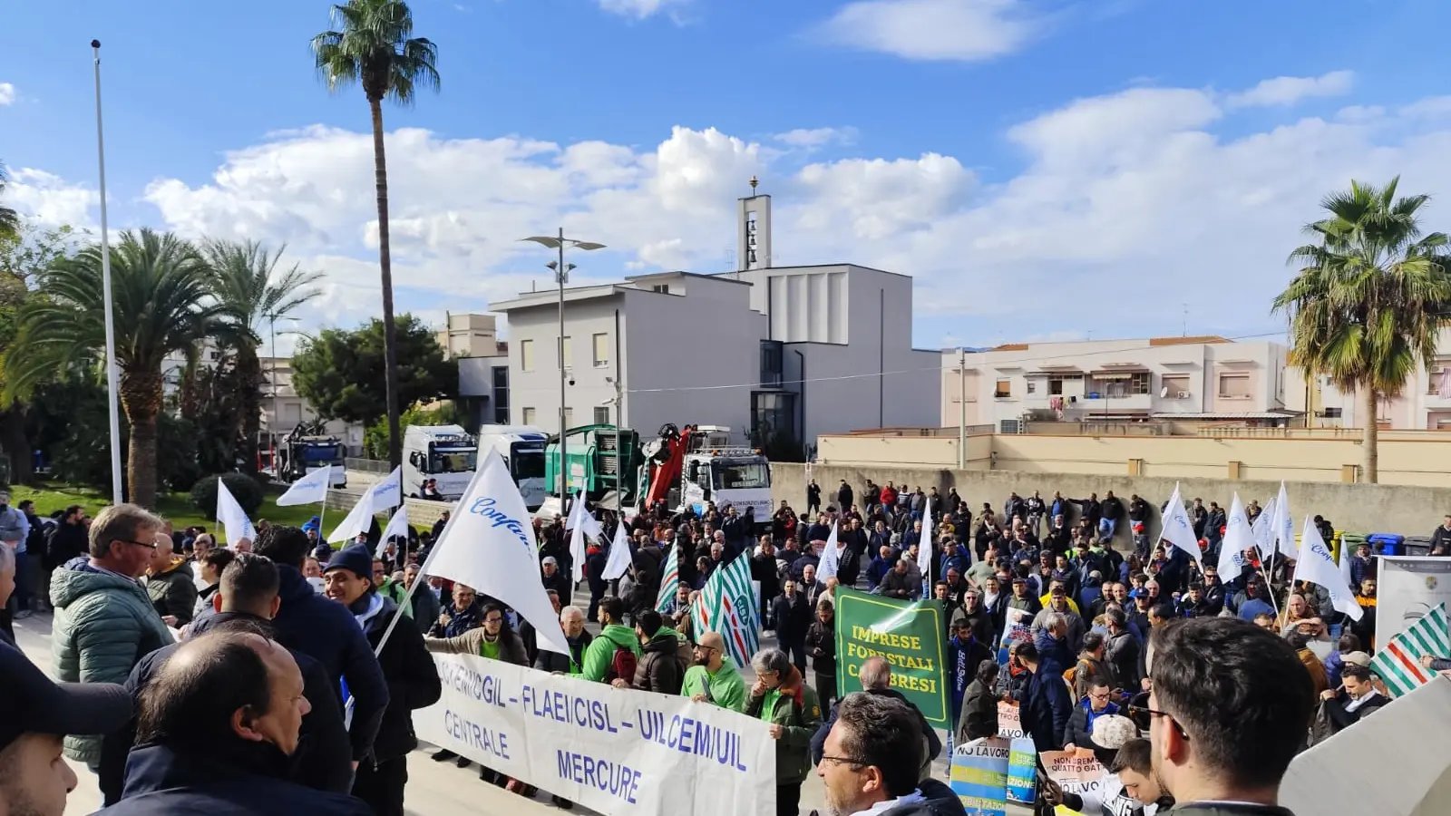 Sono arrivati in gran numero, sfilando per le vie limitrofe a Palazzo Campanella con in testa un nutrito gruppo di sindaci e, immediatamente dopo, centinaia di lavoratori che ruotano attorno all’economia della Centrale del Mercure.