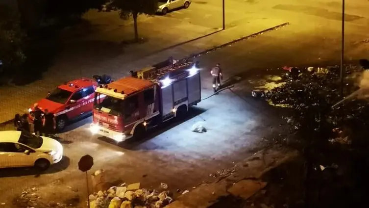 Vigili del fuoco in azione nel tormentato rione Marconi, zona Sud di Reggio Calabria. Un nuovo rogo ha interessato i cumuli di rifiuti al lato del campetto polivalente, proprio in mezzo alle abitazioni.