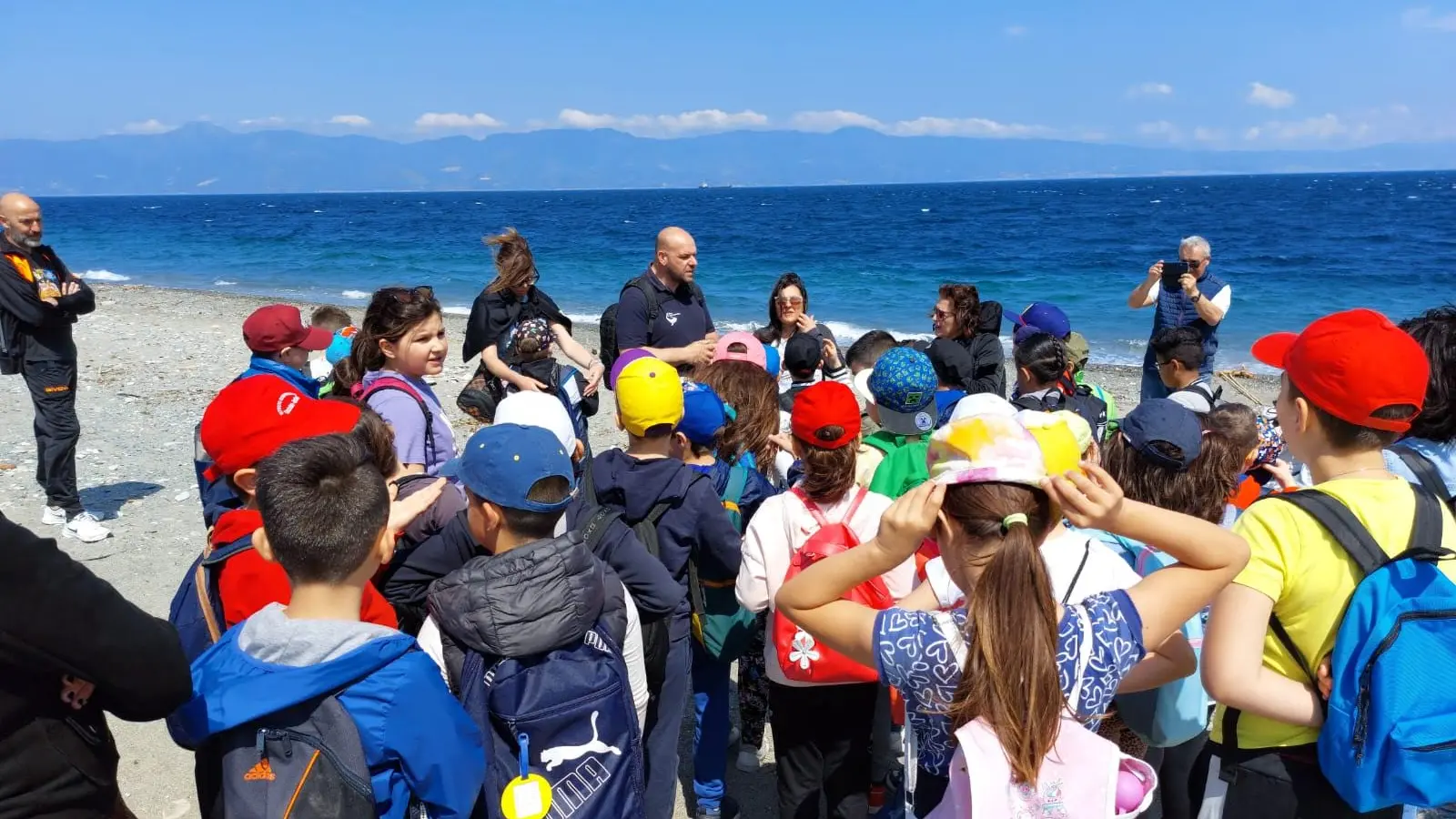 Mentre Filippo Armonio Presidente dell’associaz. Blue Conservation, e responsabile del Centro di Recupero delle tartarughe a Brancaleone che si occupa della cura e salvaguardia delle tartarughe, ha spiegato ai ragazzi che anche la spiaggia di Punta Pellaro è stata ed è luogo dove nidifica la tartaruga caretta caretta e per questo va preservata. Facendo ben comprendere ai ragazzi il perché bisogna lasciare le spiagge pulite affinchè la specie possa riprodursi. La passeggiata è terminata al Circolo Velico Sportivo FreeSpirits che ci ha ospitato. La giornata è proseguita sotto l’aspetto didattico, attraverso la proiezione alcuni video sulla biodiversità. Il primo video è stato presentato da Filippo Armonio, il quale ha spiegato ai ragazzi l’unicità delle tartarughe Caretta Caretta, specie animali che vivono tanti anni ma che ad oggi sono in via d’estinzione per il comportamento malsano della gente che lascia i rifiuti di plastica, ami, lenze che si trovano poi all’interno delle tartarughe, che loro curano nel centro di recupero a Brancaleone.