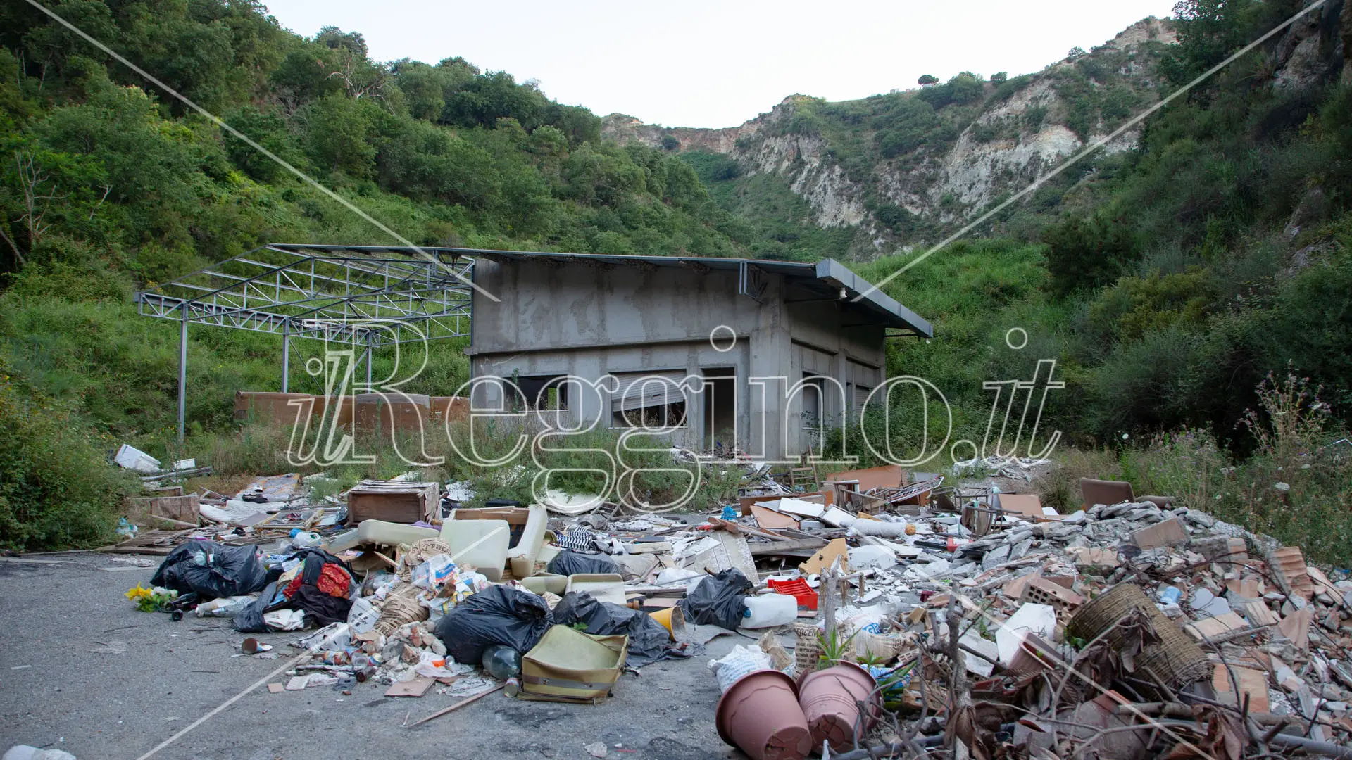 Un posto incantevole, perso nel verde, adagiato tra le colline della Vallata del Gallico un posto che oggi già solo a guardarlo fa rabbrividire. Resta un casolare disabitato, quelli che una volta erano degli uffici, ma accanto ancora più inquietanti degli enormi serbatoi con percolato stantio. A fare da cornice tantissimi rifiuti, questi all’aria aperta, frutto dello scempio e dell’inciviltà di chi pensa a peggiorare la natura già malata del posto, aggiungendo rifiuti a rifiuti sotterrati.