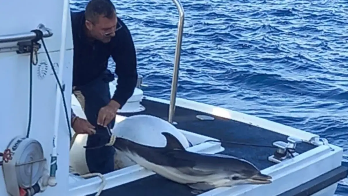 Il racconto: «Una traina lenta, fino alla motovedetta della CP 2088, per una consegna ultima e commossa all'equipaggio della Capitaneria, per caso vicino e che senza esito, ha issato a bordo il piccolo cetaceo senza respiro»