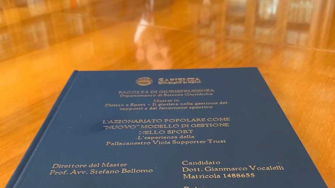 La Pallacanestro Viola si congratula con Gianmarco Volcalelli che oggi ha conseguito il master in “Diritto e Sport – Il giurista e la gestione dei rapporti e del fenomeno sportivo” presso l’Università La Sapienza di Roma con una tesi dal titolo “L’azionariato popolare come ‘nuovo’ modello di gestione nello sport – l’esperienza della Pallacanestro Viola Supporters Trust”.