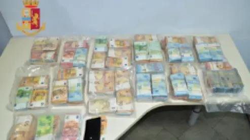 I primi accertamenti al terminale eseguiti nell’immediatezza davano esito positivo per il T.R. che risultava segnalato per diversi pregiudizi penali. L’ingiustificata insofferenza al controllo mostrata dai due soggetti ha insospettito il personale operante che ha ritenuto di approfondire lo stesso mediante perquisizione personale dei due individui estesa, poi, al complesso veicolare. La perquisizione veicolare dava esito positvo, in quanto nel vano situato nella parte alta della cabina dell’autista, veniva rinvenuto un coltello con manico in legno e lama di 18 centimetri, mentre al di sotto del materasso della lettiga, adibita a riposo degli occupanti, abilmente occultati e senza che si notasse alcun rialzo, venivano rinvenute varie buste contenti un ingente quantitativo di denaro per un valore di euro 599.960,00, sotto forma di sacchetti sottovuoto.