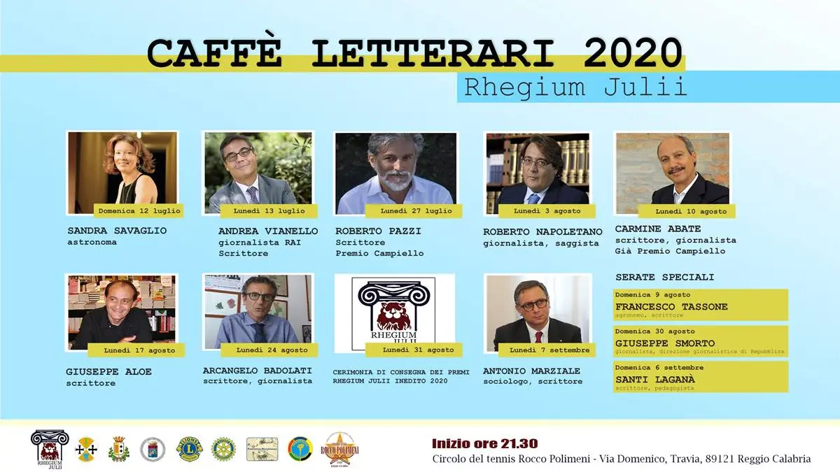 Durante l’incontro, alla presenza del Sindaco avv. Giuseppe Falcomatà, il Circolo Culturale ‘Rhegium Julii’ illustrerà il programma estivo dei CAFFE’ LETTERARI 2020.