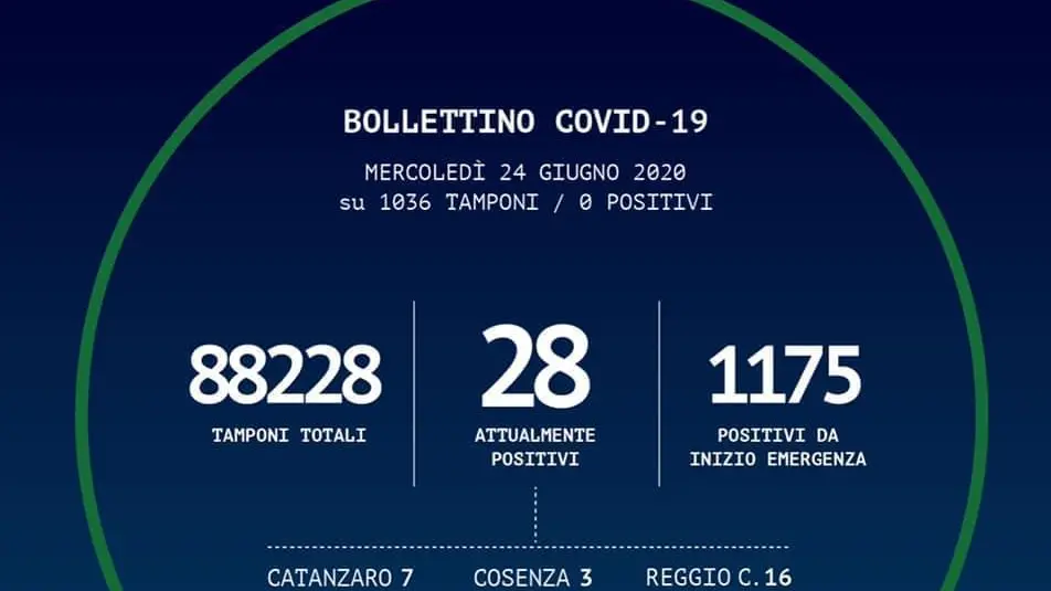 In Calabria ad oggi sono stati effettuati 88.228 tamponi. Le persone risultate positive al Coronavirus sono 1.175 (+0 rispetto a ieri), quelle negative sono 86.005.