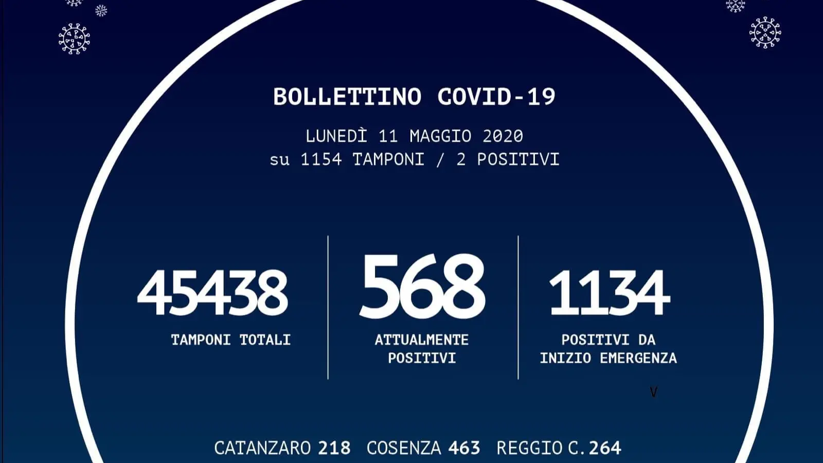 In Calabria ad oggi sono stati effettuati 45.438 tamponi. Le persone risultate positive al Coronavirus sono 1.134 (+2 rispetto a ieri), quelle negative sono 44.304.