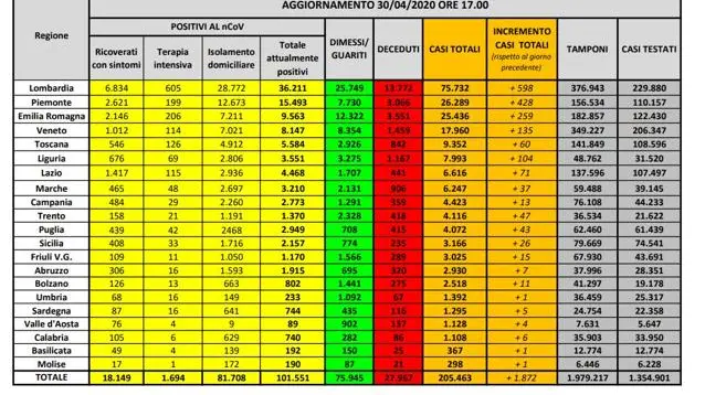 Veneto 17.960 (+135, +0.8%; ieri erano stati +117)