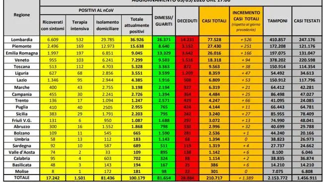 Lombardia 77.528 (+526, +0.7%; ieri erano stati +533)