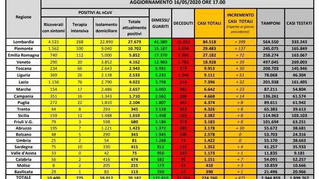 Veneto 18.928(+39, +0,2%; ieri erano stati +44)