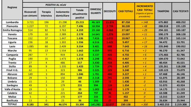 Sicilia 3.427 (+4, +0,1%; ieri +2)