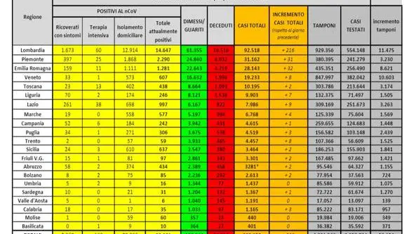I dati regione per regione
