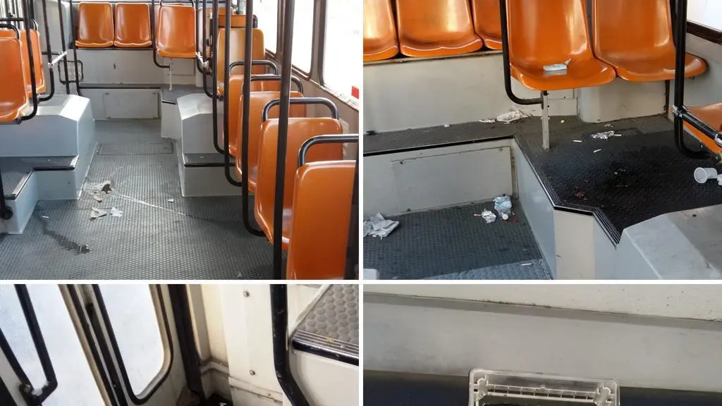 Entrambi gli autobus dell’Amc sono stati lasciati dai tifosi reggini in condizioni vergognose: sporcizia di ogni tipo – carte, cicche di sigarette e residui di bibite. Inoltre, sono stati danneggiati sedili e corrimano e totalmente staccato e, quindi, rotto il sistema di geolocalizzazione presente sui mezzi.