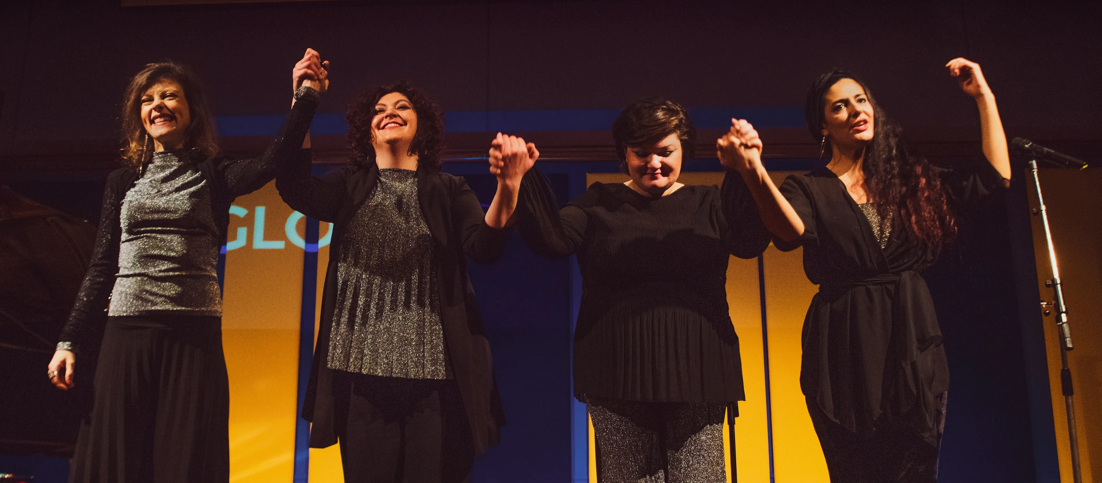 Orgogliosamente siciliane e costantemente ispirare dal fascino della loro terra, nomadi nell’anima, le quattro musiciste, tra loro molto diverse, hanno coltivato una profonda sorellanza nella vita e nell’arte. Cantano insieme da vent’anni. Nel 2012 è nato il progetto del Glorius 4et, contraddistinto dall’amore per la contaminazione. Alle etichette e ai ruoli preferiscono la versatilità e la curiosità così sul palco, ogni volta, mescolano i loro timbri vocali, ne esplorano l’impatto. Nascono così sonorità assolutamente originali, combinazioni inedite e anche stravaganti. Il loro è un vero e proprio canto nomade.
