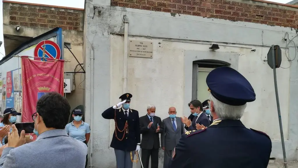 Si è svolta questa mattina, alla presenza del Sindaco di Reggio Calabria Giuseppe Falcomatà, del Questore Maurizio Vallone, del Dirigente del Compartimento Polizia Ferroviaria per la Calabria Vincenzo Macrì e dei familiari, la cerimonia di intitolazione di una strada cittadina della frazione di “Pellaro” alla memoria del Brigadiere di P.S. Filippo Foti.