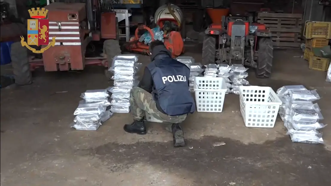 Infatti, all’interno del capannone, dentro alcune ceste di plastica sono stati rinvenuti 150 panetti di cocaina sistemati, due per ogni busta di cellophane termosaldata, in 75 pacchi. Le perquisizioni estese ad alcuni fondi coltivati ad agrumeto nelle vicinanze del capannone – anch’essi nella disponibilità di Rocco Molè – consentivano di individuare un ulteriore ingente carico di cocaina, occultato al di sotto della superficie del terreno.