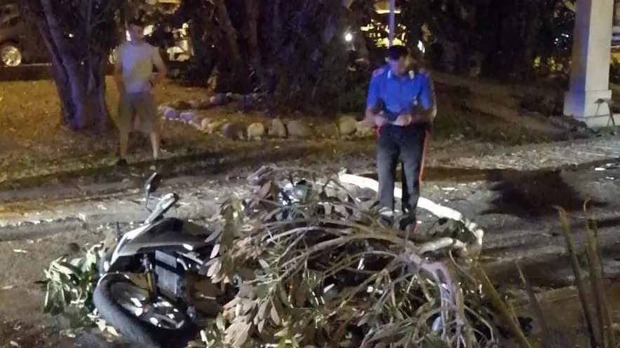 Paura sul lungomare di Reggio Calabria dove ieri sera, intorno alle 22, il ramo di un albero di grosse dimensioni si è spezzato centrando in pieno uno scooter parcheggiato. Fortunatamente nessuna conseguenza per il proprietario e per i passanti, che a quell’ora affollano quello che da molti è ritenuto il chilometro più bello d’Italia. Sul posto per i rilievi sono intervenuti i carabinieri e i vigili del fuoco.