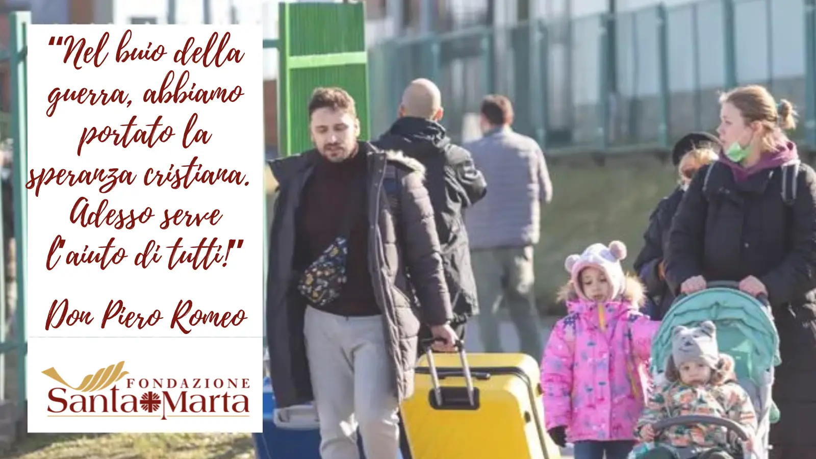 «Una missione – prosegue il sacerdote – iniziata con il lunghissimo viaggio e che ora continua con l’accoglienza nel nostro territorio, per non abbandonare le 50 persone, donne e bambini, in un momento così terribile e doloroso della loro vita. Questi drammatici momenti di guerra ci spingono, come dice il profeta Isaia, a guardare il nostro Dio con occhi nuovi, con occhi di fiducia, umiltà e conversione». Del gruppo che ha affrontato il viaggio faceva parte anche Don Giuseppe Alfano: «Siamo partiti domenica mattina con due autobus, messi a disposizione dall’agenzia Federico, carichi di indispensabili medicinali, prodotti alimentari e abiti da donare ai profughi in fuga. Abbiamo pensato che era importante compiere gesti concreti per dare speranza. Sentivamo l’esigenza di affrontare questa tragedia ed abbiamo pregato per la pace durante il viaggio, mentre era innegabile la preoccupazione di tutti noi per questa missione».