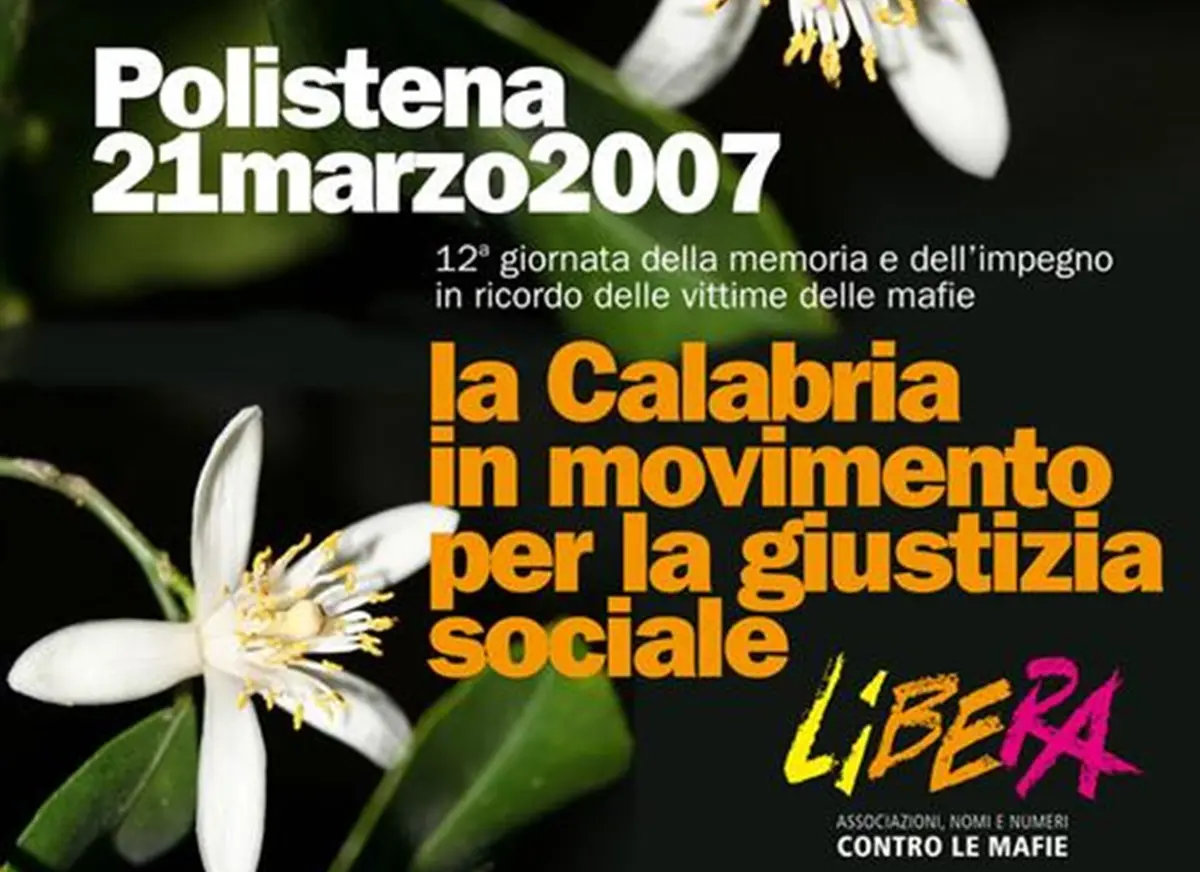 Il primo 21 marzo fu a Roma nel 1996, in piazza del Campidoglio. Poi la marcia non si è più fermata. Ancora oggi attraversa tutta l’Italia in una sorta di memoria itinerante. Ha scritto le sue pagine di memoria anche la Calabria, che con centinaia di nomi alimenta quello scrigno di storie. Anche in Calabria sono arrivati familiari da tutta Italia per non dimenticare. È accaduto a Reggio Calabria, terza città dopo Roma e Niscemi ad avere ospitata la Giornata nel 1998. Poi la grande manifestazione di Polistena il 21 marzo 2007 con una significativa partecipazione di giovani, emblema di una “Calabria in movimento per la giustizia sociale”.