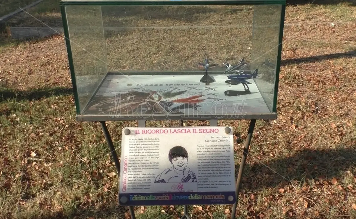 «Andiamo a vedere le Frecce Tricolori», vorrei poter proporre a Gianluca che amava tanto gli aerei. «Mi avrebbe certamente risposto di sì con grande entusiasmo». Quella di Gianluca per gli aerei era una grande passione. Sempre con il naso all’insù per scrutarne qualcuno. Per ricordarlo anche attraverso di essa nel 2015 Libera ha posto una teca in piazza Castello a Reggio in cui un aereo in miniatura è esposto con gli autografi del colonnello Ian Slangen, comandante della Pattuglia acrobatica nazionale delle Frecce Tricolori esibitesi quello stesso anno sopra lo Stretto, e degli altri piloti.