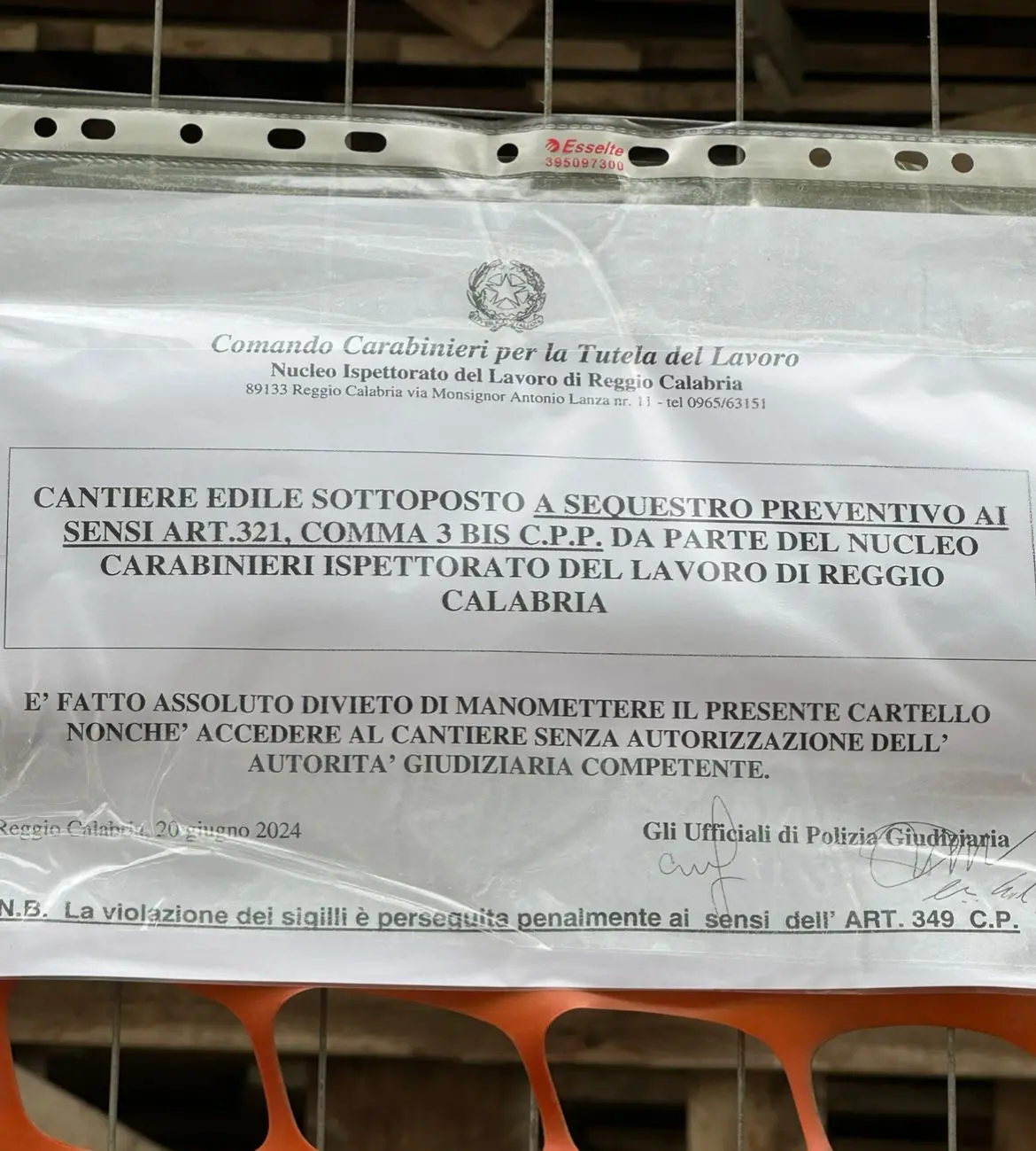 Ma da ieri, in quello che doveva essere un cantiere di rinascita, sono apparsi dei sigilli, apposti dai carabinieri del nucleo ispettorato del lavoro per porre sotto sequestro preventivo il bene. Irregolarità sarebbero state riscontrate proprio in materia di sicurezza del lavoro.