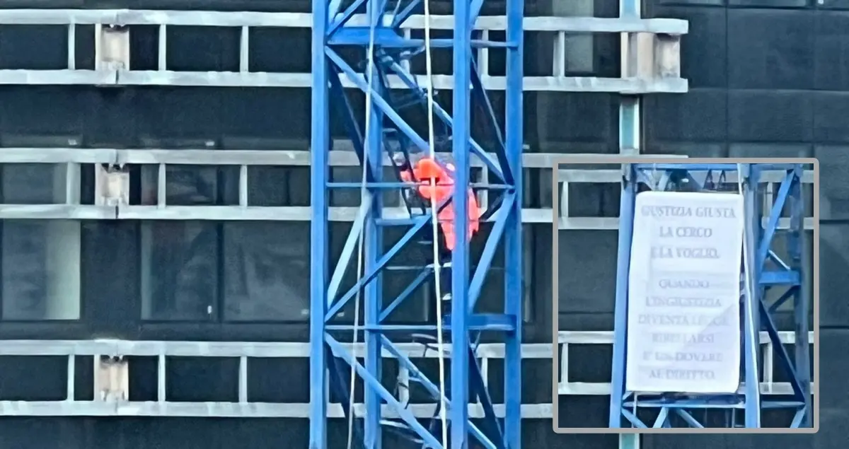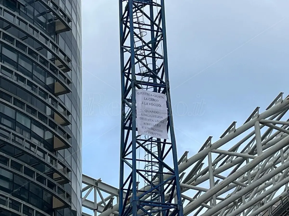 Si è arrampicato sulla gru del cantiere del palazzo di Giustizia, di fronte al Cedir che ospita gli uffici della Procura di Reggio Calabria, all’alba di stamattina e non intende scendere. Ha lasciato la sommità che aveva raggiunto e dove era rimasto per oltre tre ore, ma non interromperà la sua protesta che, annuncia, «sarà a oltranza». Chiede giustizia come scritto sul cartello che ha fissato sulla gru e dove si legge: «Giustizia giusta la cerco la voglio. Quando l’ingiustizia diventa legge ribellarsi è un dovere al diritto».