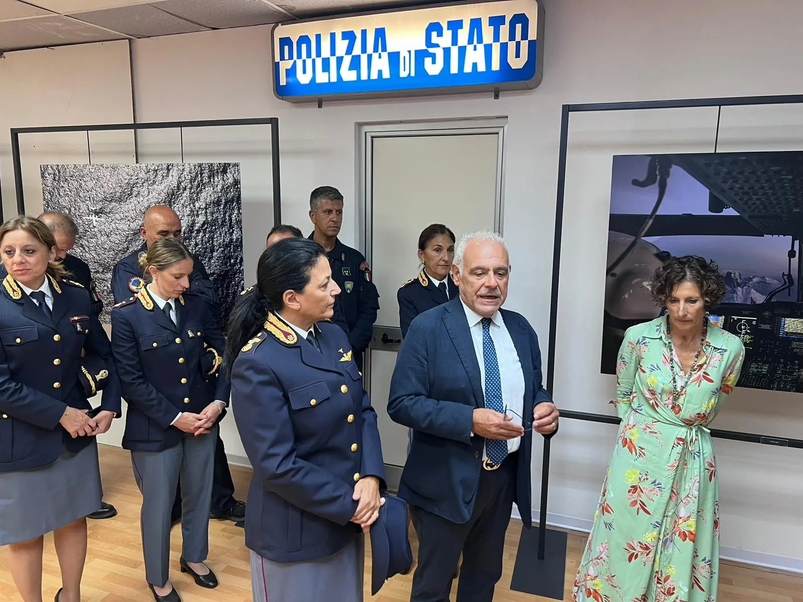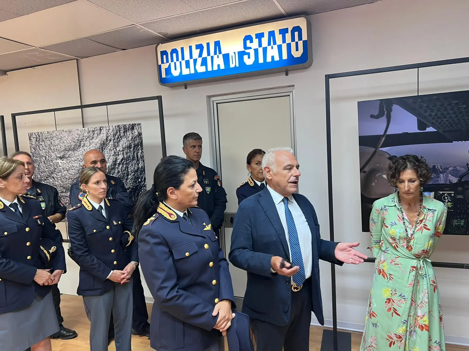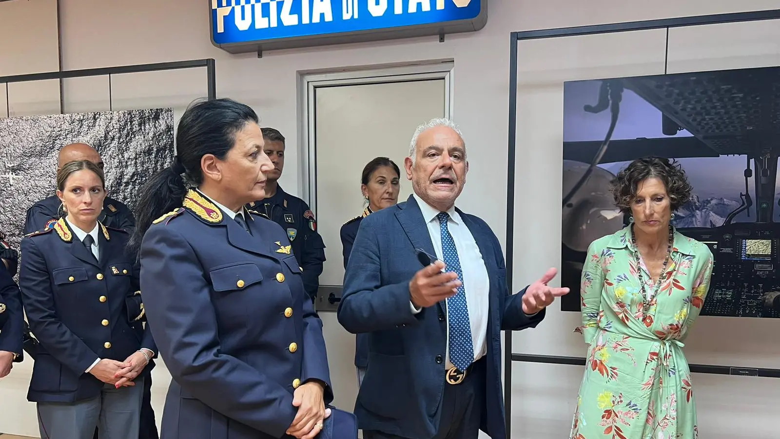«Effettivamente il 50º anniversario del reparto è stato nel 2021. Poi come sapete per le questioni legate al Covid praticamente tutto è stato allentato motivo per cui adesso siamo partiti con questa mostra itinerante. Il reparto volo è una delle articolazioni della polizia di Stato che ci consentono sotto altro angolo prospettico, non solo di tipo operativo ma anche di tipo fisico, di vedere dall’altro il nostro paese e garantire la sicurezza».