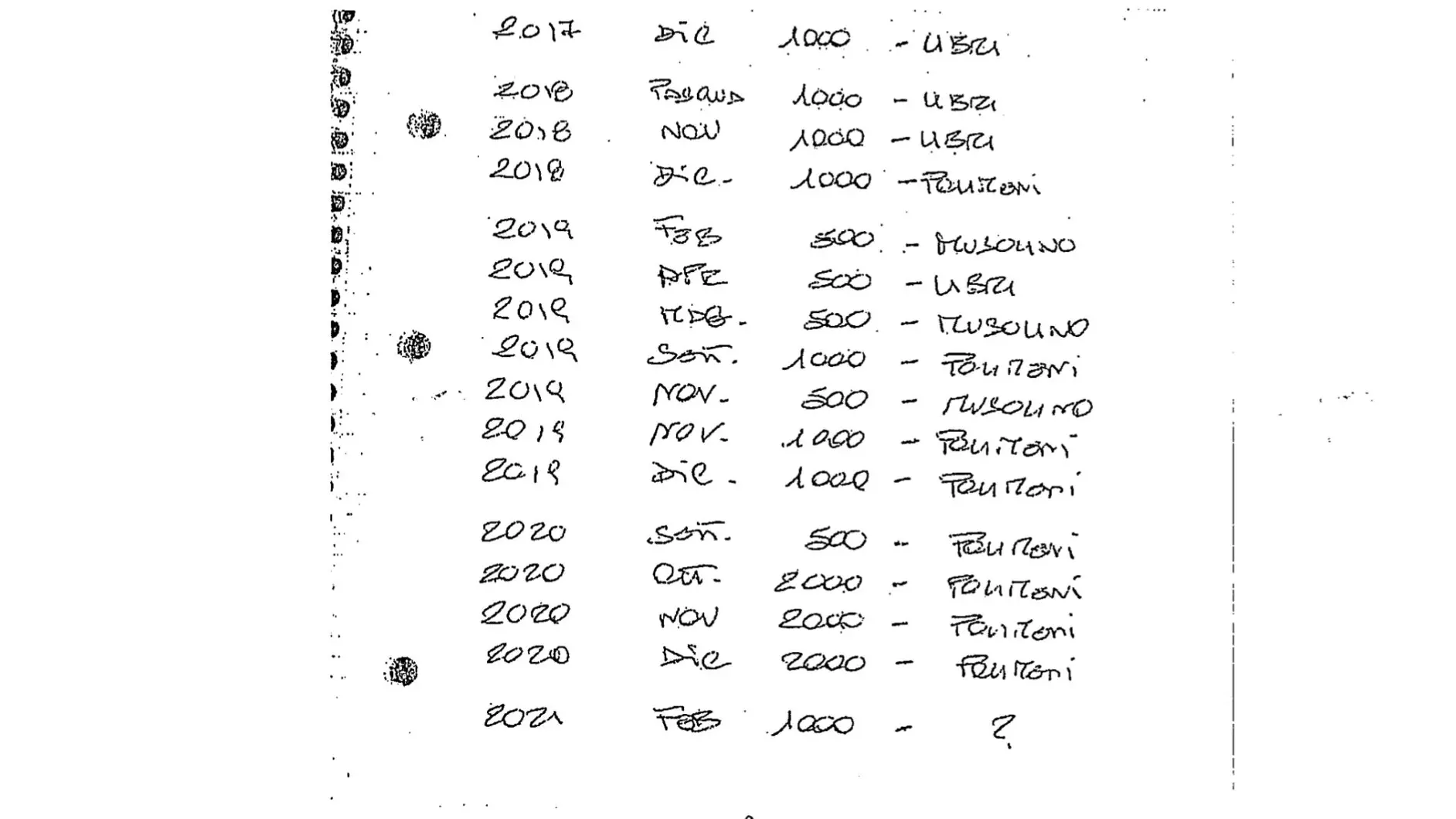 Un canovaccio in perfetto stile ‘ndranghetistico. Un registro delle quote del “pizzo” versato per poter lavorare.
