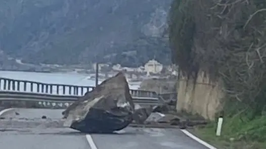 Un grosso masso è caduto sulla carreggiata alle porte di Bagnara Calabra, creando disagi alla circolazione.