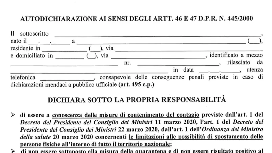 Modello Autodichiarazione ex DPCM 22 marzo 2020