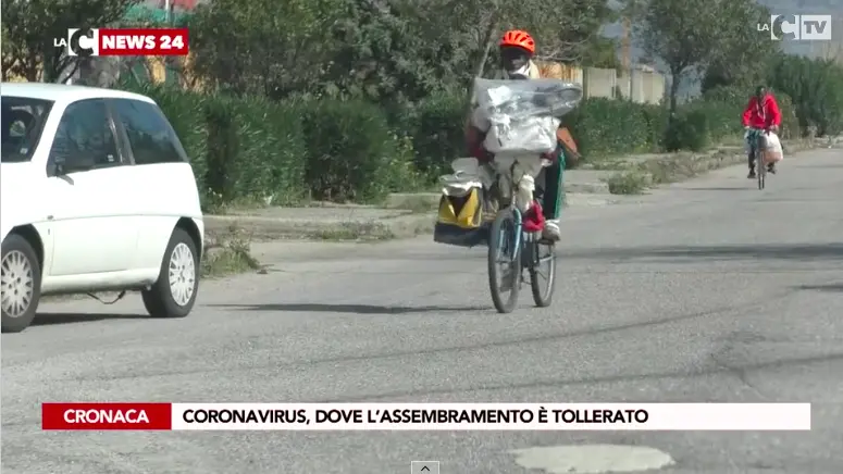 Una convivenza in spazi ristretti fra italiani e africani, e l’emergenza coronavirus rende una volta di più uguali operatori e migranti. Come spiegano i volontari incontrati nella tendopoli, che riferiscono di una igienizzazione fa da te – «il comune ci ha fornito un disinfettante dentro una bottiglia comunemente usata per l’acqua minerale», dice uno di loro – e senza mascherine, ognuno si arrangia come può.