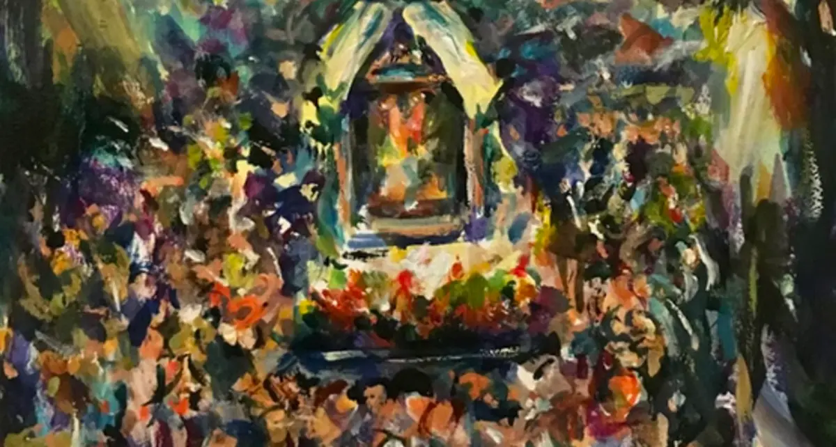 Chianalea Olio 2018 (foto Galleria Toma Reggio Calabria) e nel riquadro l’artista Stellario Baccellieri – Scorci di Scilla e Chianalea, la processione dei fedeli al seguito della Vara della Madonna della Consolazione di Reggio e i frequentatori del Caffè Greco di via Condotti a Roma, del Caffè Florian a Venezia, del Caffè Pedrocchi a Padova, del Bar della Posta a Cortina. Cosa tiene insieme questi mondi così diversi e lontani se non l’umano che li attraversa, che li anima, che li ammira restandone rapito, emozionato e ammaliato. Un umano che le pennellate decise, e al contempo delicate, del maestro reggino Stellario Baccellieri, apprezzato a Roma, in Italia e oltreoceano, ha raccontato nel suo intenso percorso pittorico ed emotivo.