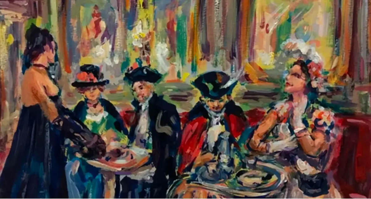 Anche nel Caffè Greco aveva iniziato a osservare l’umano. Lo aveva esplorato con il suo talento. Uno sguardo, quello di Stellario Baccellieri, posato poi anche sui frequentatori del Caffè Florian a Venezia, del Caffè Pedrocchi a Padova, del Bar della Posta a Cortina, fino poi giungere a Capri dove, ritrovando le luci e le suggestioni intime delle sue origini, le aveva fuse con le successive esperienze mondane.
