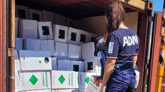 I funzionari ADM, dopo un primo accertamento sulla dichiarazione di importazione che conteneva indicazioni non conformi rispetto ai prodotti presentati allo sdoganamento – la merce, dichiarata dall’importatore come diclorometano, era in realtà gas fluorurato –, hanno verificato l’effettiva natura del carico: per una parte, esso era costituito da 112 bombole di gas refrigerante non ricaricabili per le quali vige il divieto di importazione in base a quanto disposto dal Regolamento (UE) n. 573/2024, poiché impattanti sul clima, e, per la restante parte, da 3377 bombole ricaricabili sottoposte a stringenti quote di accesso al territorio unionale.