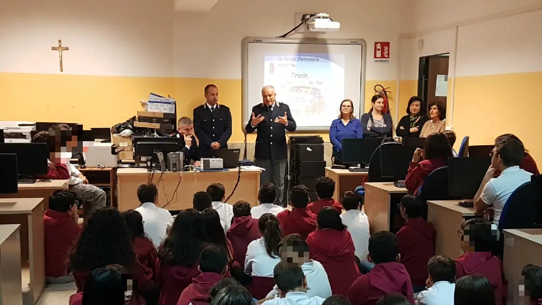 Considerato il gran numero di giovani che utilizzano il treno per raggiungere la scuole ed i dati sugli incidenti ferroviari che coinvolgono gli adolescenti, gli agenti della Polfer , anche con il supporto di filmati e slide, hanno spiegato ai ragazzi quali potrebbero essere i pericoli nascosti del trasporto ferroviario ed i comportamenti da evitare ad ogni costo quali, l’attraversamento dei binari, il salire a bordo del treno in movimento, il lancio di oggetti verso i convogli in transito, l’imbrattamento delle carrozze, l’oltrepassare la linea gialla. Interagendo con gli studenti, attraverso un gioco di domande e risposte i poliziotti hanno aiutato i ragazzi a risolvere dubbi e incertezze su come comportarsi in caso di necessità, a chi rivolgersi in situazioni di pericolo, trovando ancora una volta riscontro sull’efficacia del progetto voluto dal servizio di Polizia Ferroviaria. Anche grazie alla disponibilità ed alla proficua collaborazione con il dirigente scolastico e con un attento corpo docenti, gli incontri proseguiranno nei prossimi giorni con l’obbiettivo di raggiungere tutti i 600 studenti dell’istituto.