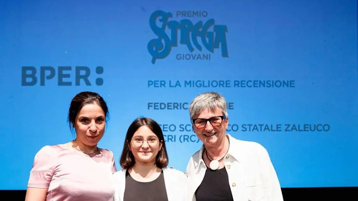 Scrittrice di grande talento, Federica Pitone è una studentessa della III^ A del liceo scientifico “Zaleuco” di Locri guidato dalla dirigente Carmela Rita Serafino (scuola che ha partecipato allo “Strega” per la prima volta) e, anche grazie alla passione che le ha saputo trasmettere la professoressa Rosella Fontana (anch’ella nostra concittadina) ha già mostrato le proprie capacità vincendo, lo scorso 11 maggio, il premio riservato agli elaborati scritti nel concorso “Oltre le Colonne d’Ercole” indetto dall’omonima fondazione, che lo ha consegnato durante la partita di beneficenza a favore del laboratorio di medicina di precisione, disputatasi tra la Nazionale Italiana Attori e la selezione di vecchie glorie del calcio calabrese “Le Colonne d’Ercole”. Nella sezione “Arte” dello stesso concorso, il premio se l’è aggiudicato Sofia Marcellino, altra studentessa sidernese dello “Zaleuco”.