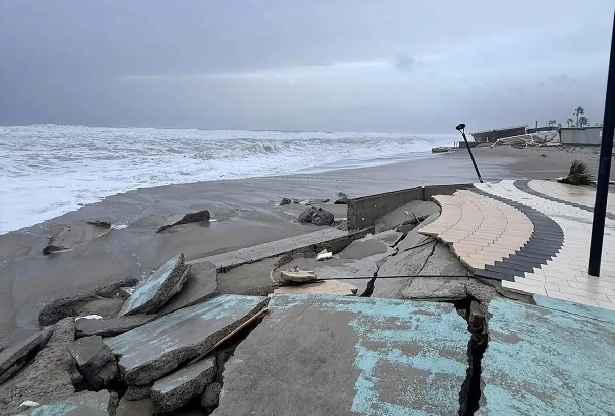 A Bovalino lungomare totalmente allagato e interdetta la circolazione per una sospetta fuga di gas a causa degli allagamenti. Danneggiamenti anche nella centrale piazza Nosside a Locri, al lido La Playa. A Marina di Gioiosa crolli e allagamenti nel lungomare da poco realizzato, viabilità interdetta al momento in diverse zone.