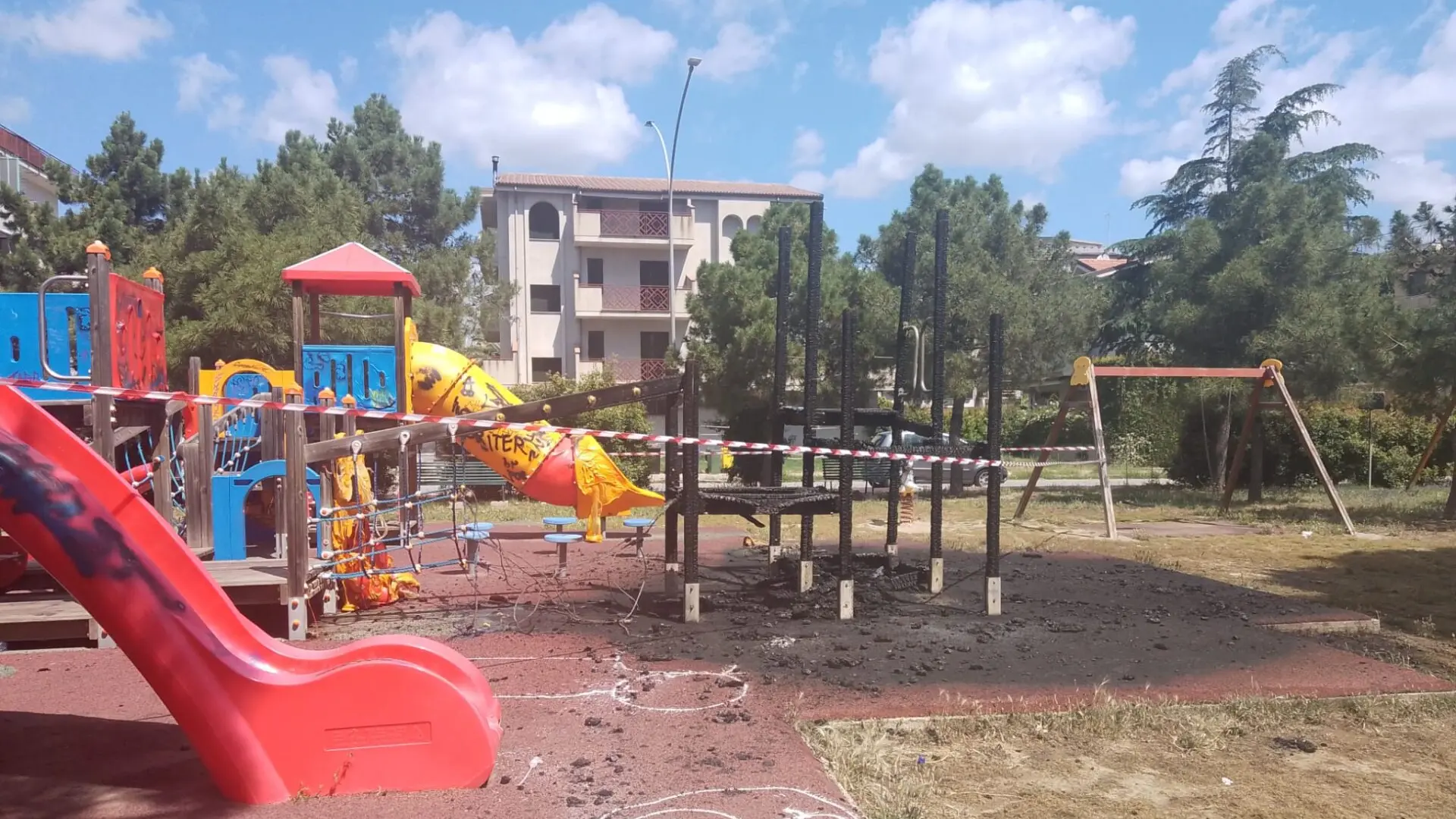 Ancora un episodio di vandalismo a Marina di Gioiosa Jonica. Dopo il raid all’ex lido Aquarius nei giorni scorsi, confiscato alla criminalità organizzata, questa notte ignoti hanno devastato il parco giochi in pieno centro cittadino, incendiando alcune strutture in legno per bambini e imbrattando il fondo con scritte e simboli fallici.