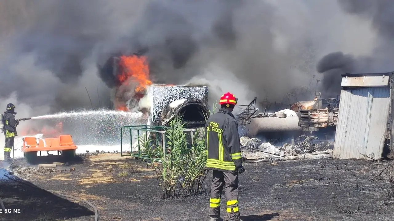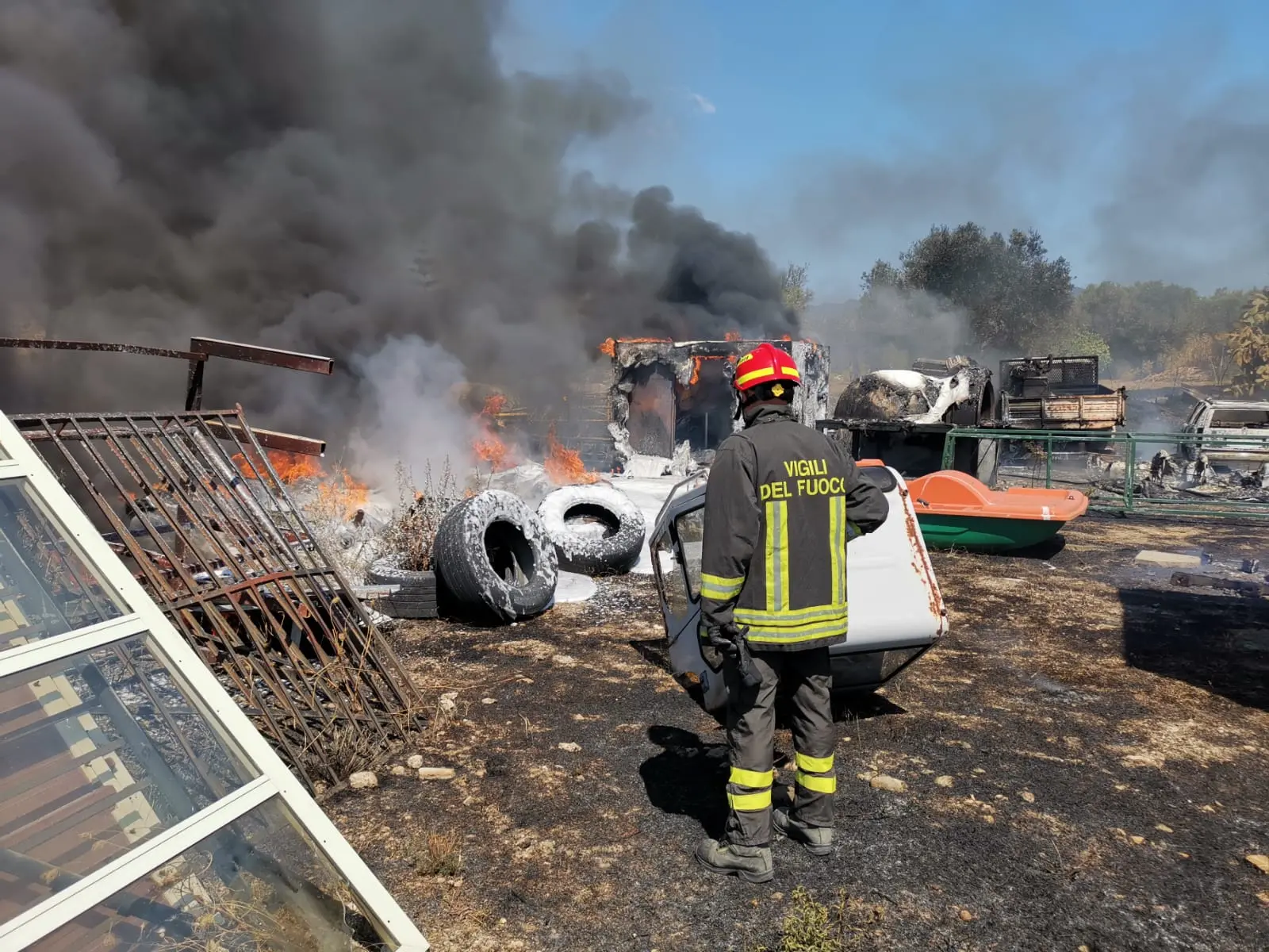 L’incendio, le cui cause sono in corso di accertamento, si è propagato rapidamente ai mezzi pesanti in sosta nel parcheggio e a vari macchinari depositati che, a causa della loro natura, hanno contribuito ad alimentare le fiamme, per le quali si è reso necessario l’utilizzo di liquido schiumogeno e oltre tre ore di intenso lavoro. Il tempestivo e abile intervento dei Vigili del Fuoco ha evitato che l’incendio si propagasse agli altri automezzi in sosta.