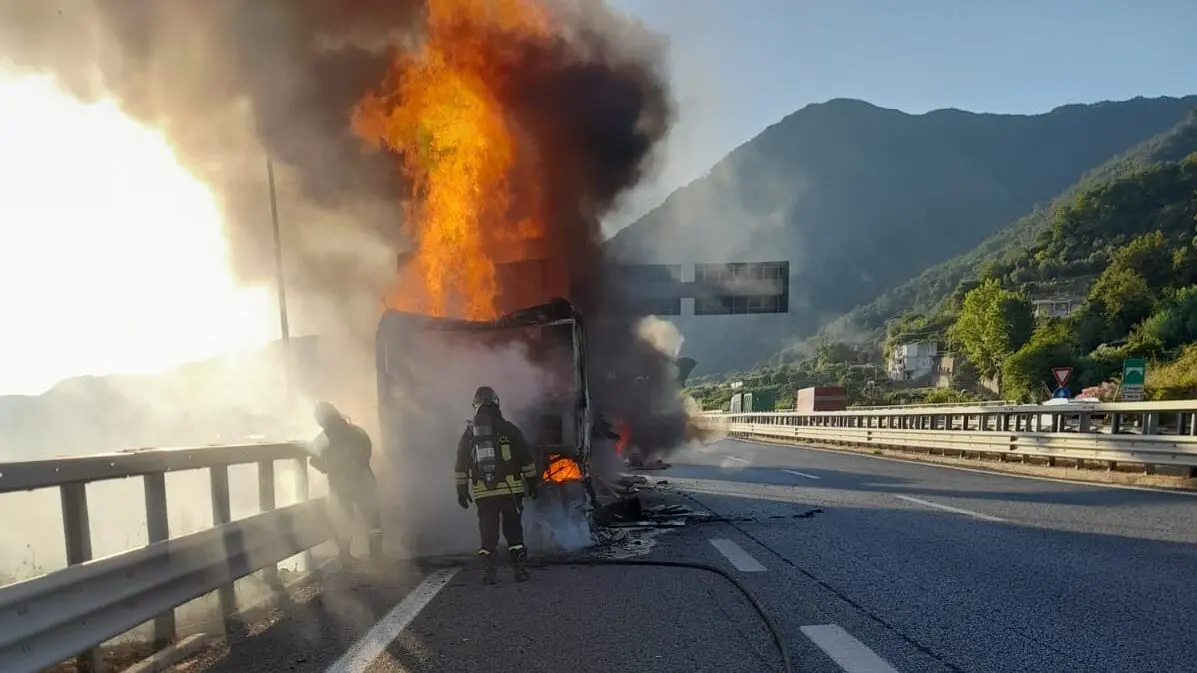 Fortunatamente, l’autista è riuscito a mettersi in salvo, uscendo dal mezzo prima che fosse completamente avvolto dal rogo.