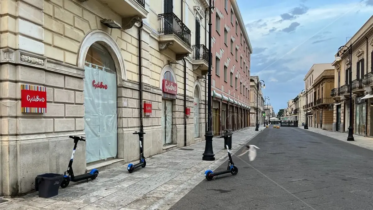 L’appello ai cittadini è al buon senso nella cura di cose che non sono res pubblica ma che nel momento in cui vengono usate devono essere trattate con rispetto (In foto: alcuni monopattini lasciati sul corso Garibaldi).