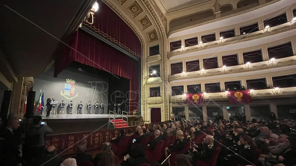 Gremito il teatro Francesco Cilea di Reggio Calabria in occasione della celebrazione dei 171 anni dalla fondazione della polizia di Stato. Nutrito il parterre di autorità e istituzioni. La celebrazione è stata arricchita dalla partecipazione di gruppi di scolaresche della città. Tra queste l’ic Montalbetti-Telesio, che ha curato una performance dedicata a Giovanni Falcone e Paolo Borsellino, e l’ic De Amicis-Bolani, il cui core Doremi, diretto da Enza Cuzzola, ha eseguito l’inno d’Europa e l’inno d’Italia. Si sono esibite anche l’arpista Maria Adelaide Pensabene e la pianista Cristiana Perazzo del liceo classico Tommaso Campanella.