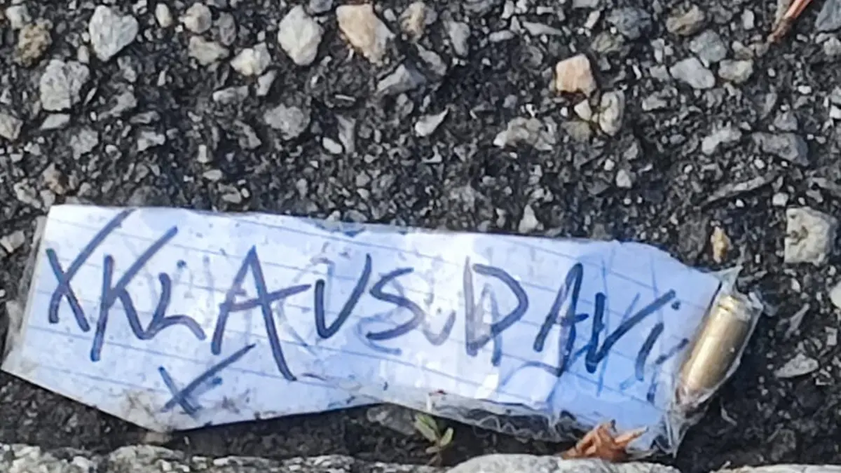 Sul posto sono giunti gli uomini della Polizia di Stato, con il reparto della Scientifica che ha effettuato i rilievi del caso, repertando sia il biglietto che il proiettile rinvenuto.