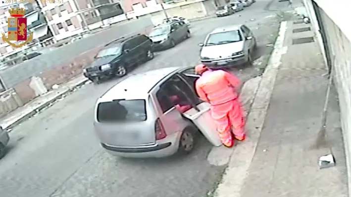 Questi ultimi (identificati in Claudio Amato e Marco Venuti) indossavano sotto le tute dei giubbotti antiproiettile e, soprattutto, erano armati di una pistola e di un fucile a pompa che veniva occultato all’interno di un piccolo bidone per la raccolta dei rifiuti che, dotato di rotelle, portavano con sé, unitamente ad una scopa e ad una paletta.