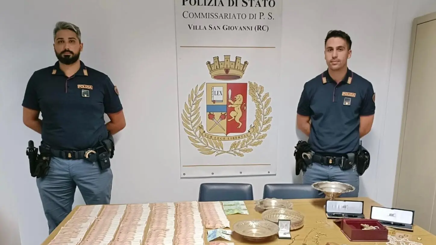 I due, dopo la segnalazione giunta dalla Questura di Messina di una macchina da controllare che poteva trovarsi nel Comune di Villa San Giovanni, sono stati fermati, dopo un breve inseguimento, dalla Volante del Commissariato e sottoposti a perquisizione personale estesa poi al veicolo che restituiva esito positivo in quanto gli agenti hanno rinvenuto diversi monili in oro, abilmente occultati, numerosi pezzi di argenteria, e circa 13.000 euro in denaro contate.